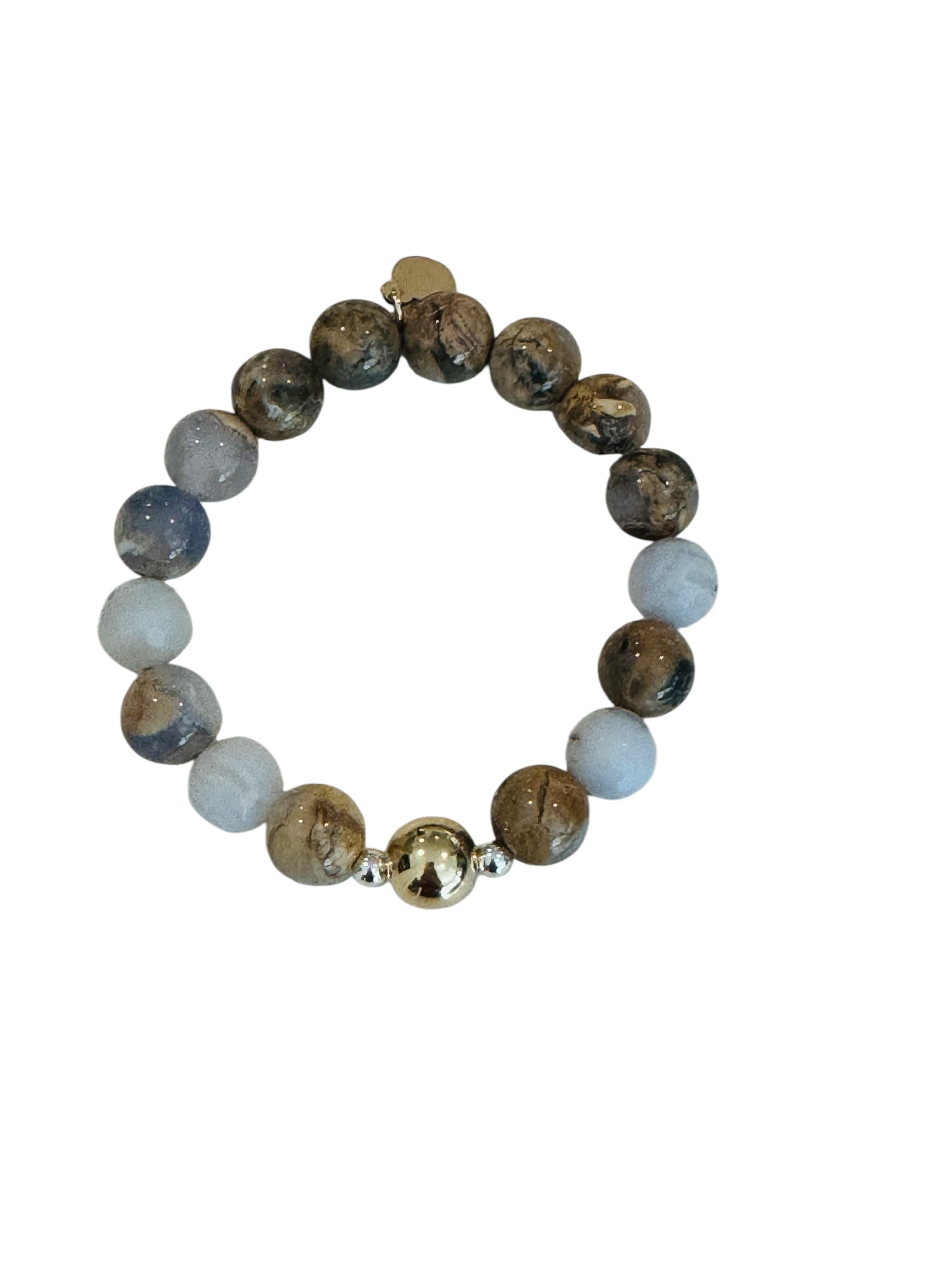 10mm chalcedony and blue lace agate with gold filled accent beads