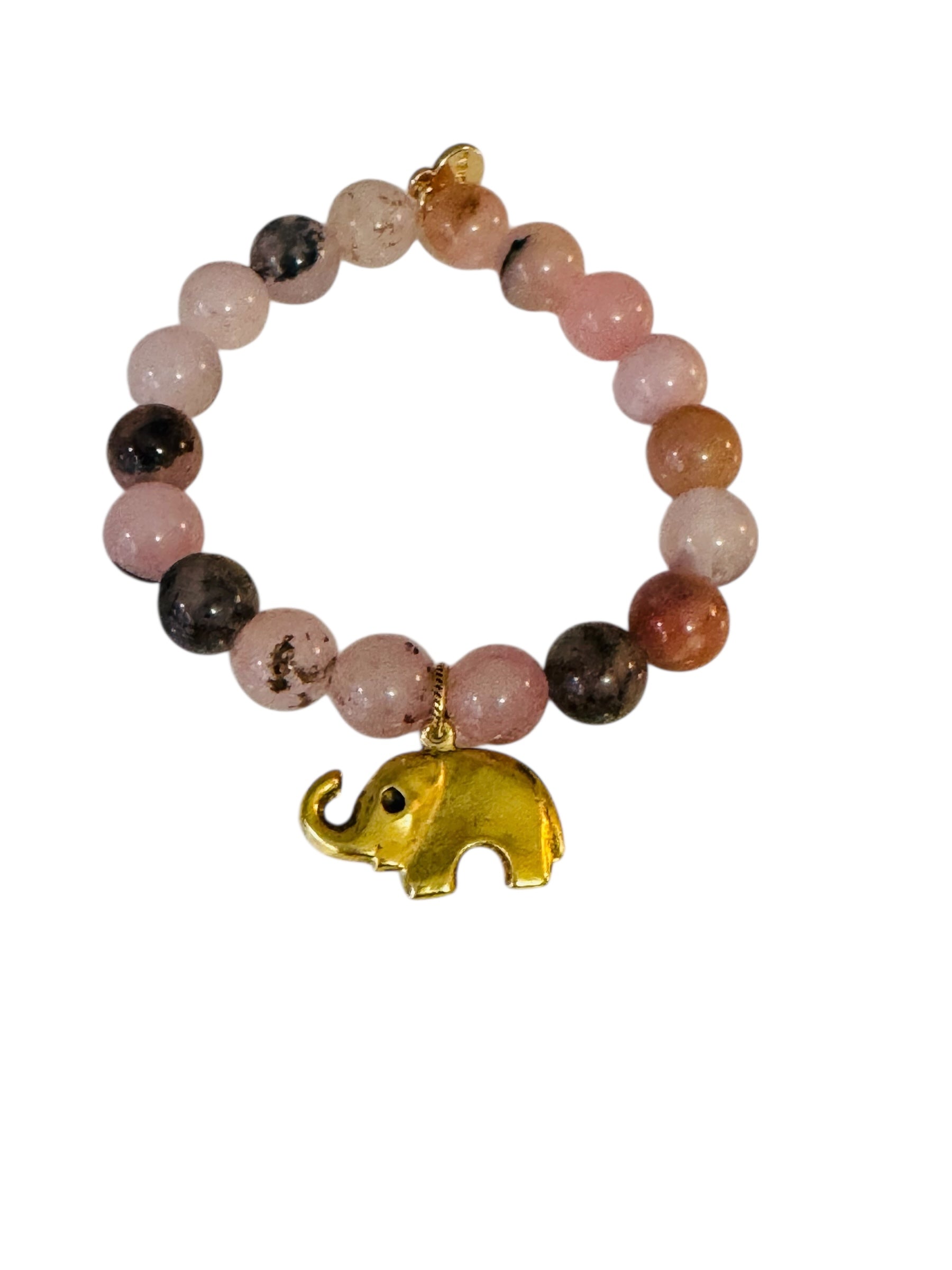 Our bracelets are made of natural stones and require care to keep them in their best shape. Gently wipe down with a soft cloth after wear. Do not wear in water or expose stones to hairspray, perfumes, etc. Most of our bracelets are made from a stretch material that can snap if wearer is not careful. Please be cautious about putting too much tension on the bracelet.
